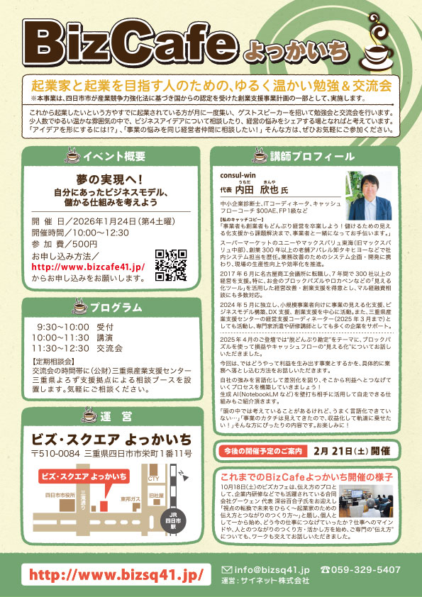 また、三重県産業支援センターの経営支援コーディネーター(2025年3月まで)としても活動し、専門家派遣や研修講師としても多くの企業をサポート。